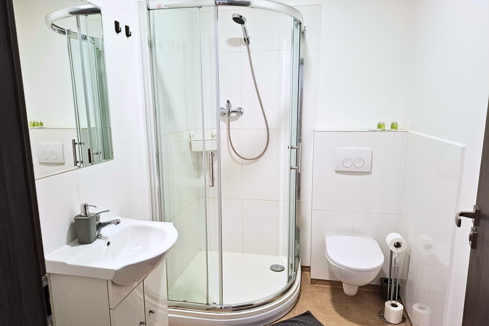 Komfortná izba s vlastnou kúpeľňou pre 2 až 3 osoby je vybavená: