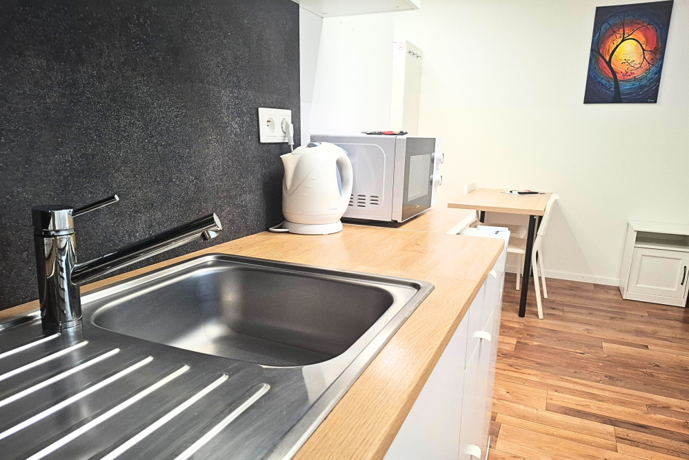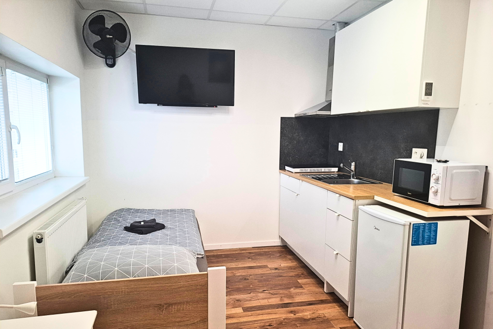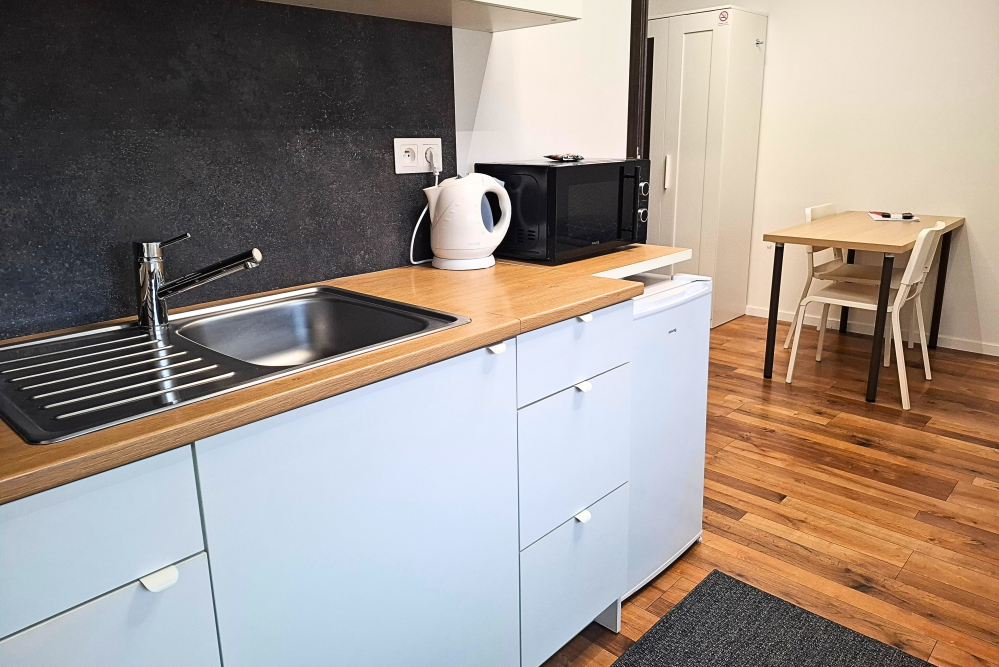 V izbách s kuchynkami je k dispozícii indukčná varná doska a základné kuchynské príslušenstvo na varenie. Osušky sú tiež súčasťou vybavenia. Pri dlhodobom ubytovaní je v cene aj upratovanie 1x týždenne. K dispozícii je práčovňa so súčkami za poplatok 1€.