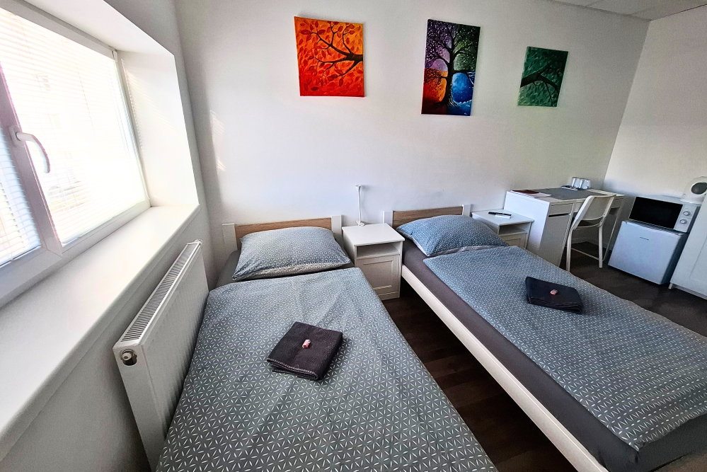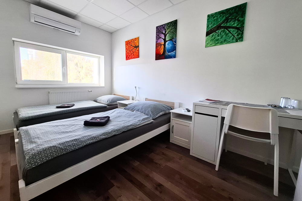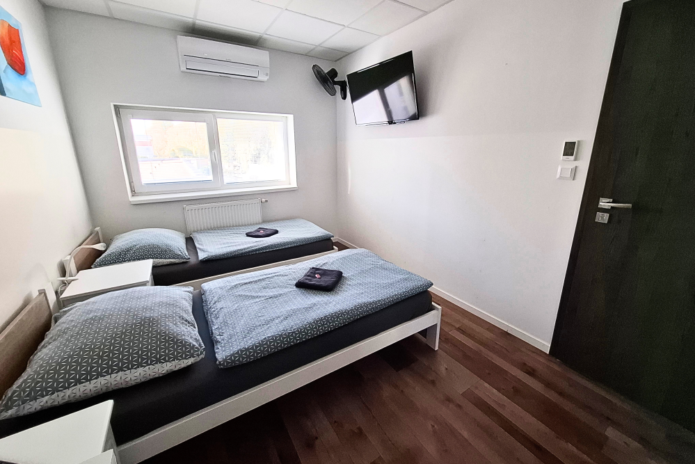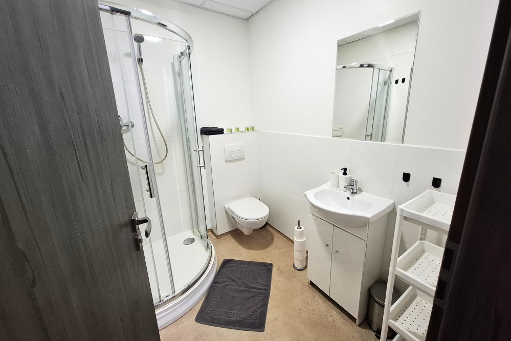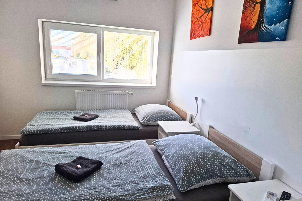 Apartmán s vlastnou kúpeľňou je ideálny pre dva páry alebo rodinu. Pozostáva z dvoch samostatných izieb, kde každá obsahuje: